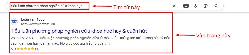 - Bước 2: Tìm từ trên xuống dưới sẽ thấy trang https://www.luanvan1080.***/***-***-***-***-nghien-cuu-khoa-hoc.html thì bấm vào đó