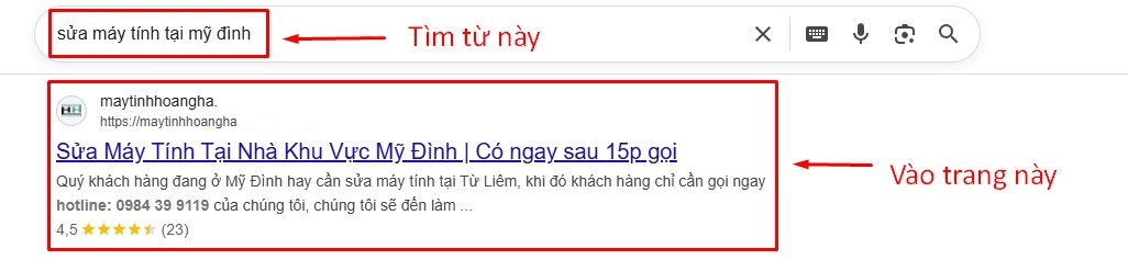 - Bước 2: Tìm từ trên xuống dưới sẽ thấy trang https://maytinhhoangha.***/***-***-***-***-hp/ thì bấm vào đó